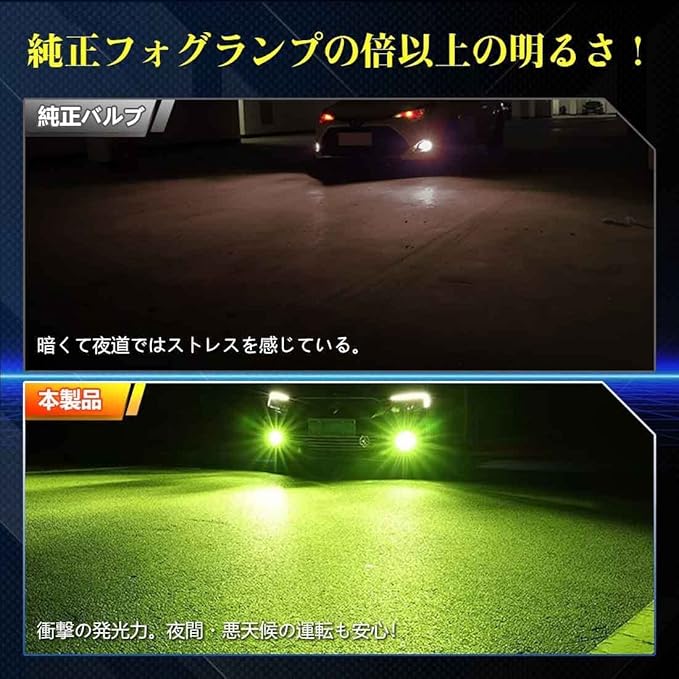 h11 led フォグランプ ライムグリーン h8 led フォグ ライムイエロー h16 led フォグランプ レモンイエロー ファンレス 結露防止 一体型 無極性 ポン付け 一体型 12V / 24V車用 LEDバルブ 2個セット