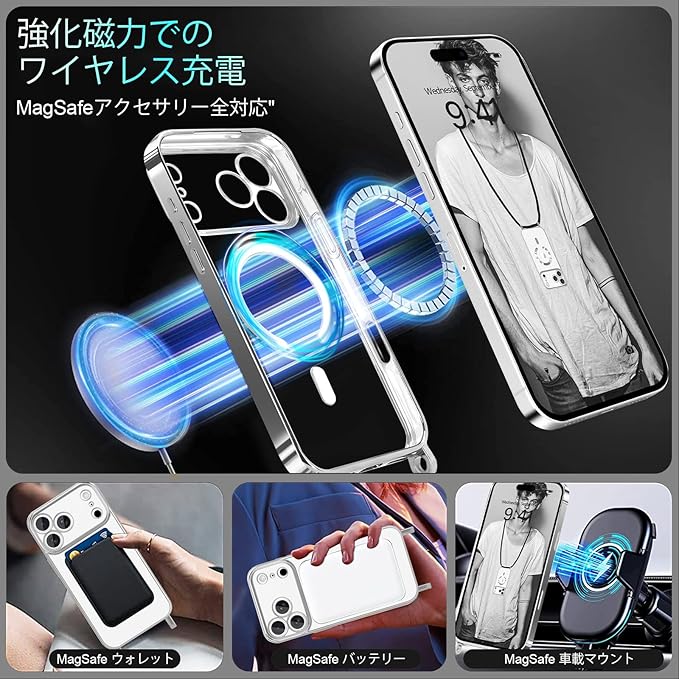 【磁気充電対応】: 内蔵の強力マグネットで、MagSafe対応のワイヤレス充電器やカーマウント、パワーバンクなどと簡単に着脱可能。ケースを外す必要は一切ありません。