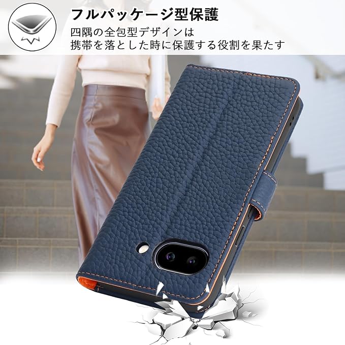 対応 Google Pixel 9a ケース 手帳型 グーグルピクセル9a ケース 本革 カード収納 スタンド機能 ピクセル9a ケース 大容量 財布型 耐衝撃 pixel 9a スマホケース レザー ブルー と オレンジ