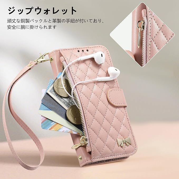 Pixel 9A用 ケース 手帳型 グーグルピクセル9A カード収納 スタンド機能 財布型 PUレザー googleピクセ9A 携帯カバー ストラップ付き 全面保護 耐衝撃 Pixel 9A 手帳型ケース [ピンク]