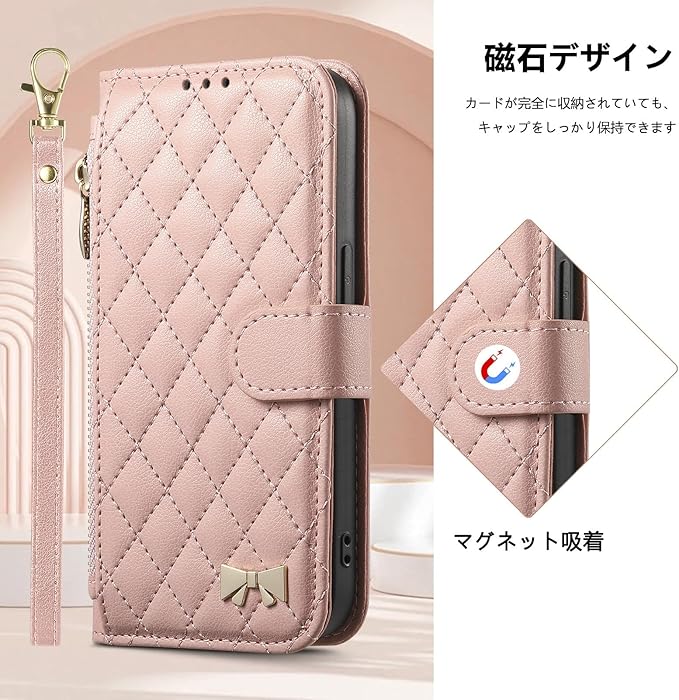 カードポケットスマホケース ピクセル9A手帳型の内側にはカードスロットがあり、カード、紙幣、名刺を収納でき。表紙にはジッパー付きポケットがあり、小銭などを収納できます。多重収納で移動しやすい。