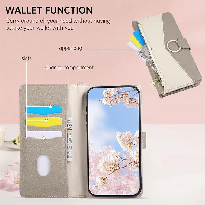 向けのピクセル9a ケース 手帳型 向けの Pixel 9a スマホケース 手帳型 ショルダーストラップ付き おしゃれ スプライシング ケース ためにグーグルPixel9a カバー 財布型 手帳型ケース 小銭入れ カード収納 スタンド機能 肩掛け 斜め掛け 携帯カバー に適合するGoogle Pixel 9a 6.3インチ対応 (グレー)