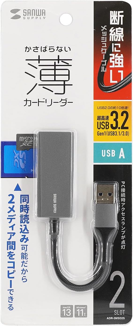 サンワサプライ USB3.2 Gen1 カードリーダー ADR-3MSD2S