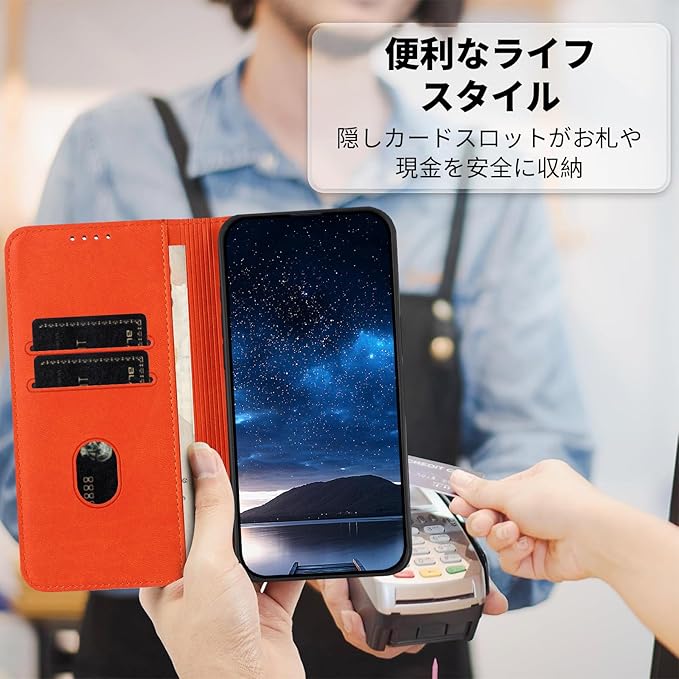 Google Pixel 9a ケース 手帳型 財布型 高級レザー カードポケット付き Kitzomi ピクセル9a 用 携帯カバー カード収納 耐衝撃 スマホケース 360度保護 マグネット式 スタンド機能[オレンジ]