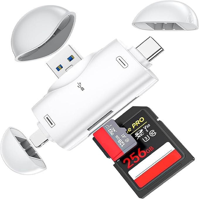 【多機種のやり取り】最新のiOSシステムにも対応しています。iphone、 USB と Type C計3端子搭載、SD/TF読み取りでき、スマホ、タブレット、ノートパソコン対応し、iOS & Mac OS / Android / Windows / Linuxシステム間でのデータ交換が可能です。パソコンなど一切使わず、iPhone・iPadとSDカードの間で直接データを転送/データ移行/コピー、写真やビデオなど瞬間的に保存できるプラグアンドプレイSDカードリーダーです。