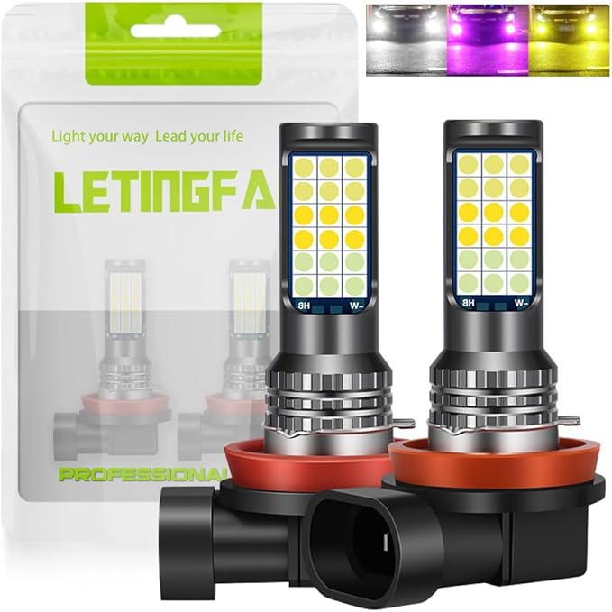 h11 led フォグランプ 3色切り替え h16 led フォグランプ 高輝度 3030チップ ホワイト/イエロー/ピンクパープル 3色切替 h8 led フォグ 車検対応 h8/h11/h16 一体型 12-24V車用 無極性 瞬間起動 取付簡単 車用LEDバルブ 2個セット (ホワイト + イエロー + ピンクパープル)
