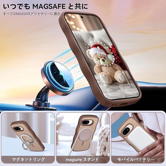 【MagSafe対応/超磁力】 グーグル ピクセル9a ケースはマグセーフ対応は、N52 高強度MagSafe技術を採用しており、金属製アクセサリーがしっかりと固定されており、安定性が確保されており、簡単には落ちません。ワイヤレス充電、パワーバンク、カーマウント、その他すべての Mag 安全アクセサリにも適しています。安定性が高く、充電器が近くにある場合は高速ワイヤレス充電が可能です。しっかり吸着するので、スマホケースを装着したままスマホを素早くワイヤレス充電できます。