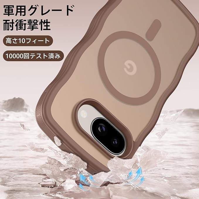 Telaso Google pixel 9A ケース ウェーブ 半透明 MagSafe対応 可愛い グーグル ピクセル9a ケース 波状 ワイアレス充電対応 黄変防止 レンズ保護 滑り止め マット感 薄型 ブラウン