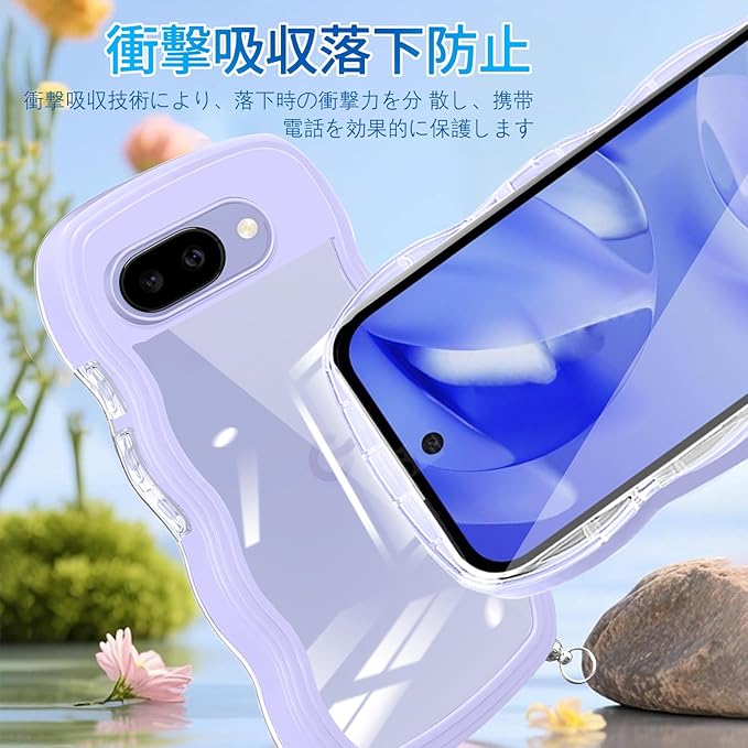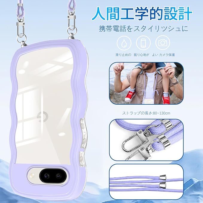 Google Pixel 9a 用の ケース ショルダー ストラップ 波状フレーム Pixel9a 用の カバー 首掛け 斜めかけ 肩がけ 韓国 ピクセル 9a スマホケース (パープル)