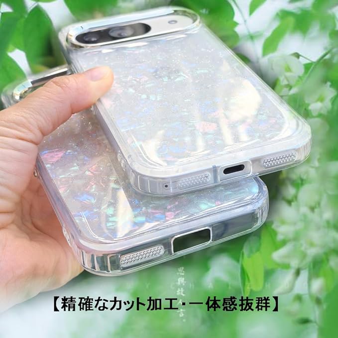 スマホケース 対応 Google Pixel 9a クリアケース 透明 キラキラ フラッシュ シェル柄 貝殻柄 かわいい スフとTPU 傷防止背面 滑り止め 衝撃吸収 おもしろい キャラクター ストラップ穴 女性人気 グルピクセル9a 携帯電話カバー (マルチカラー, Google Pixel 9a)