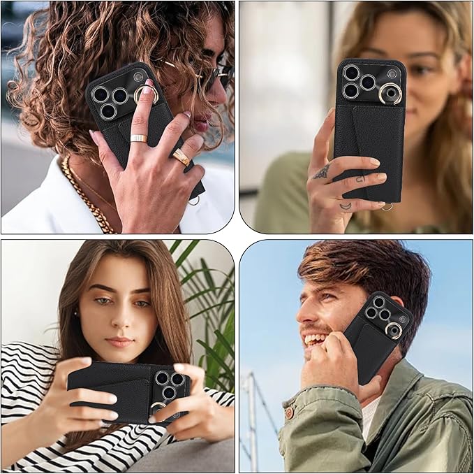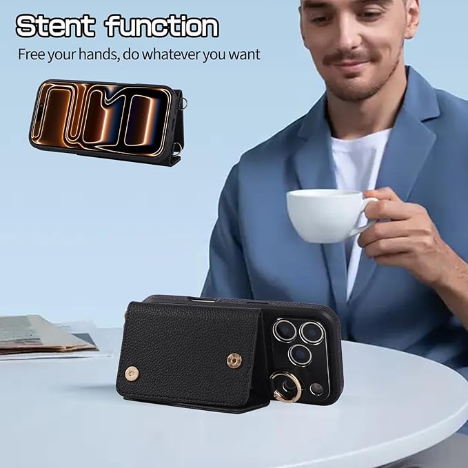 Pelanty 縄掛けケース For iPhone 17 Pro Max 手帳型ケース for iPhone17 Pro Max ケースリング 携帯カバー 肩掛け斜めがけショルダー ストラップ付き PUレザー+TPU アイフォン17プロ Max 背面カバー お札入れ小銭入れ 財布型ICカード収納 スタンド機能 ボタン磁気 耐衝撃 落下防止 ブラック