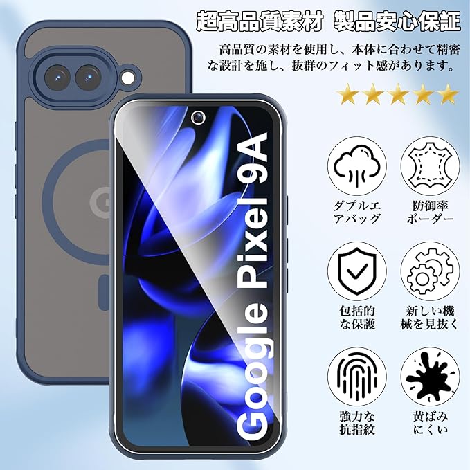 【1個+2枚セット】For Google Pixel 9a ケース(1個 MagSafe対応)+ガラスフィルム(2枚) Greerass 保護ケース ガラスフィルム付き MagSafe対応 薄型 超軽量 耐衝撃 擦り傷防止 指紋 汚れ防止 手触り良い 着脱簡単 (ブルー)