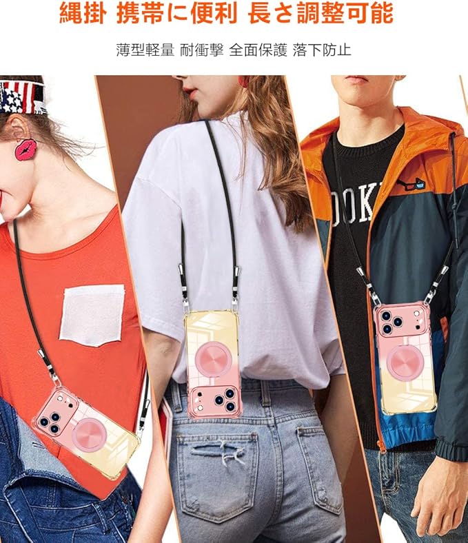 iphone 17Pro ケース クリア magsafe対応対応 リング ストラップ 360度回転 落下防止 アイフォン 17 pro 耐衝撃 アンカー構造 携帯ケース マグセーフ リング付き ショルダーストラップ 肩掛け いphone 17 プロ カバー 透明 カメラ保護 おしゃれ 純正 グラデーション