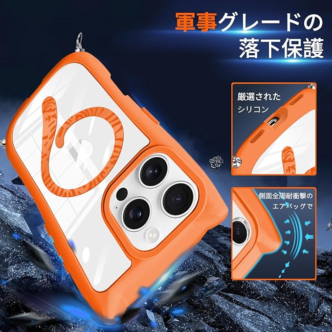 iPhone 17 Pro Max 用 ケース クリア MagSafe対応 PC背面 + TPUバンパー ワイヤレス充電 ネック ショルダー あいほん17promax カバー 肩掛け 首掛け 斜めがけ 紐付き 韓国 かわいいファッション 耐衝撃 米軍MIL規格取得 落下防止 透明 TPU 薄型 軽量 アイフォン 17Promax スマホケース
