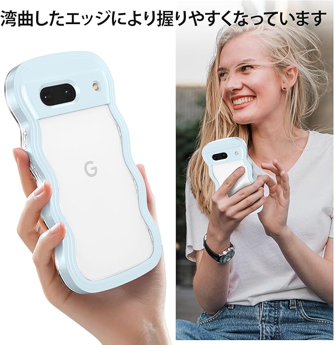 QLTYPRI Google Pixel 9a 用 ケース クリア ウェーブ ピクセル 9A ソフト TPU うねうね 透明 ケース おしゃれ 韓国 可愛い 薄型 軽量 耐衝撃 波状フレーム スマホケース ワイヤレス充電対応 ストラップホール付き(Google Pixel 9A、 ライトブルー)