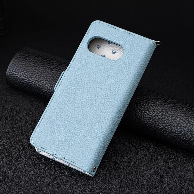 case for Google pixel 9A対応カバー グーグル ピクセル9aケース手帳型 かわいい 猫の足跡 ストラップ付き マグネット式 財布型 横置きスタンド機能付き カードポケットつき 耐衝撃 全面保護 (B4-青, Google pixel 9A対応)