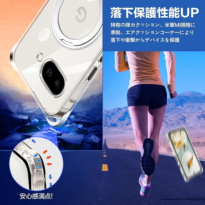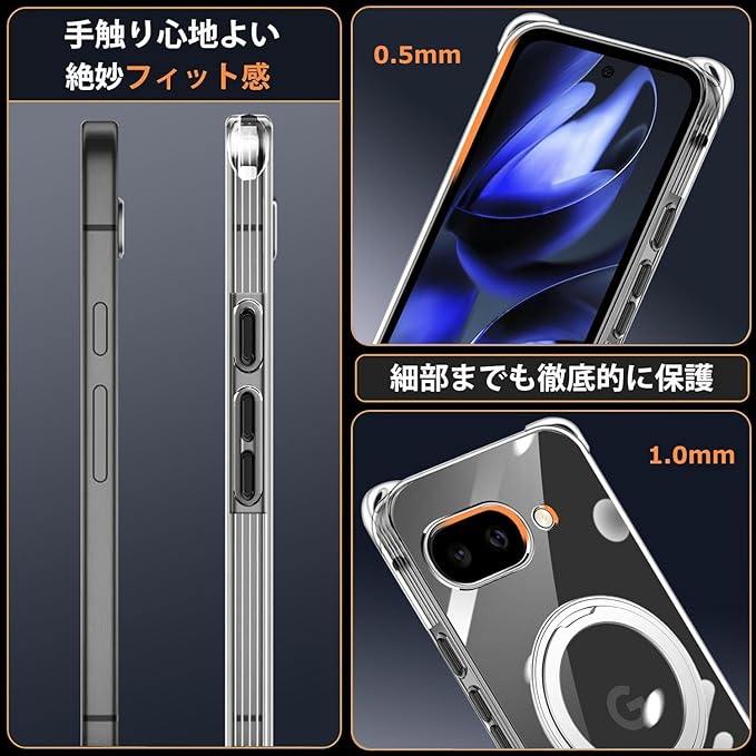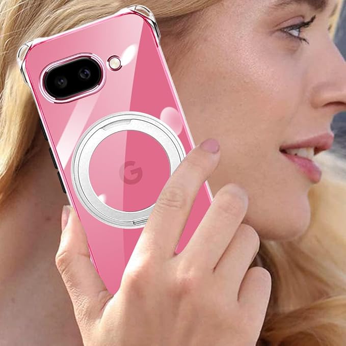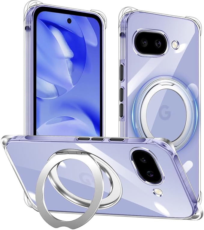 For Google Pixel 9a ケース クリア リング付き 静音360 回転スタンド 縦横両対応 耐衝撃 ピクセル 9A カバー 軽量 薄型 人気 pixel9a スマホケース 透明 TPU 四隅がエアクッション構造 車載ホルダー対応 (クリア)