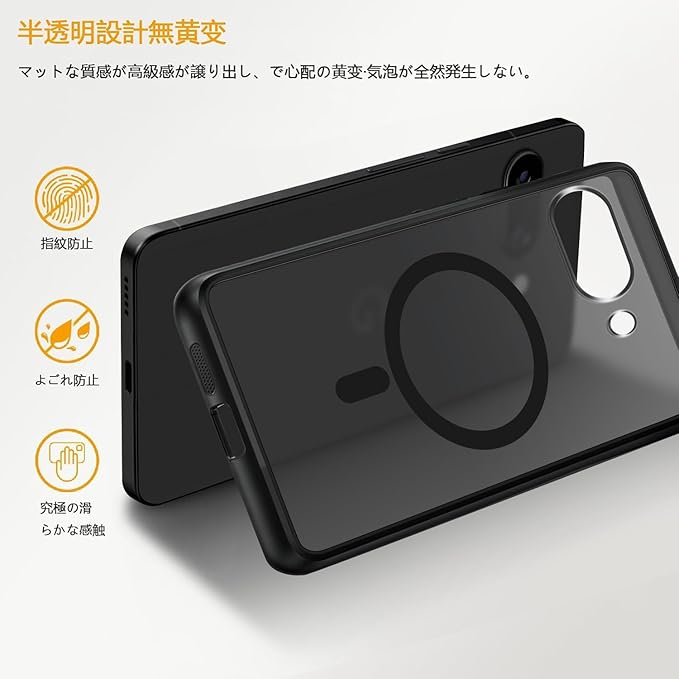For Google Pixel 9A 用 ケース MagSafe対応 マグセーフ ワイヤレス充電 マット ブラック 半透明 マグネット搭載 TPU PC 落下防止 衝撃吸収 滑り止め 防塵 耐久性 黄ばみなし 耐衝撃 全面保護 レンズ保護 グーグル ピクセル 9a 用 カバー