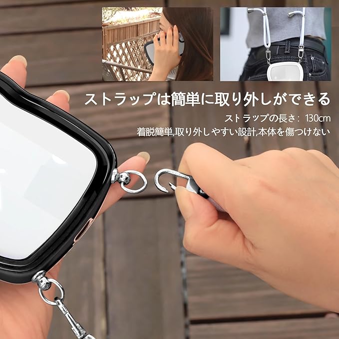 【ネックレスケース】シリコンケースには首から下げられるようにショルダーストラップが付いており、まるでアクセサリーのようにスマホを着用できます。落下防止はもちろん、紛失防止にも役立ちます。 特に旅行や、小さなお子様がいるお母さんにおすすめ、手荷物がある時にスマホを持ち続ける必要がなくなりますし、スマホを落としたり無くしたりといった心配もなくなります、バッグから携帯を取り出す手間がはぶけます。