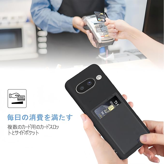 【 Agaiy 】Google Pixel 9A 対応 ケース 背面カード収納 耐衝撃 薄型 軽量(ブラック) グーグル ピクセル9A TPUスマホケース 全面保護 超耐磨 マット質感 ストラップホール付き 携帯便利 pixel9a ケース 黒