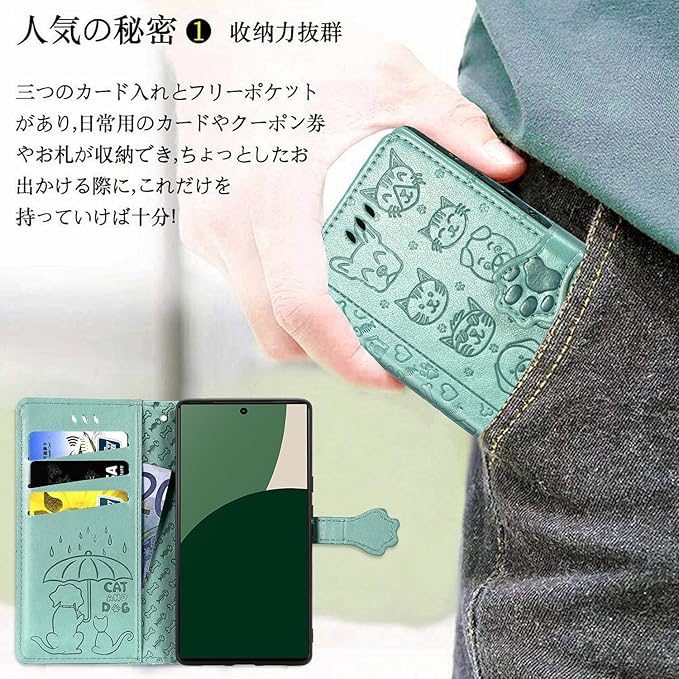 対応機種:Google Pixel 9a専用の手帳型ケースで、6.3インチディスプレイに完璧にフィット、カメラやボタンへの精密なカットアウト