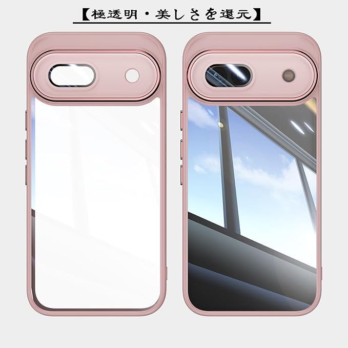 スマホケース 対応 Google Pixel 9a クリア ケース 透明 かわいい おしゃれ TPU+PC ハードカバー 操作便利 ブランド 衝撃吸収 軽量 人気 ストラップ穴あり ワイヤレス充電対応 グーグル ピクセル 9a 携帯カバー (ピンク, Google Pixel 9a)