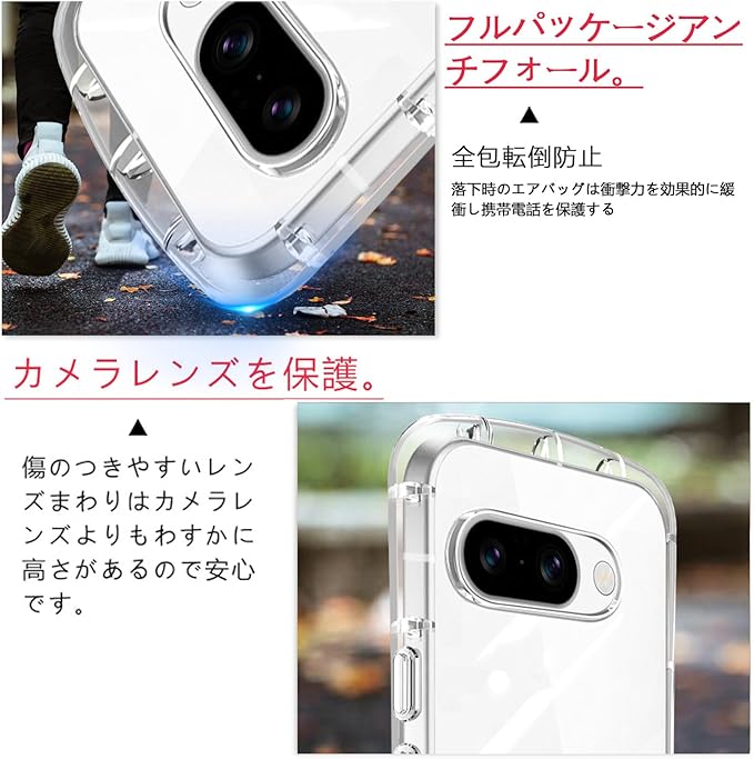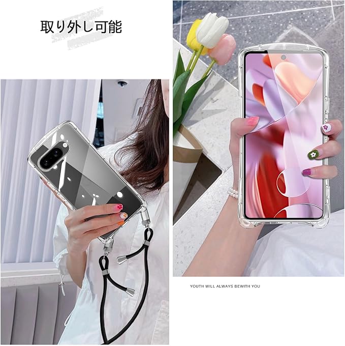 Google Pixel 9a ケース クリア ショルダー ピクセル9a スマホケース カバー 全透明 耐衝撃 肩掛け 首掛け 可愛い かわいい 韓国 透明 TPU 長さ調整可能 取り外し可能(クリア)