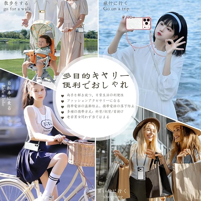 【便利なストラップ、持ち運びが簡単】耐久性と快適なストラップが装備されているため、携帯電話を手首や首に簡単に掛けることができ、手を解放できます。旅行、運動、日常活動など、いつでも携帯電話を持ち歩けて紛失しにくく、便利で実用的です。