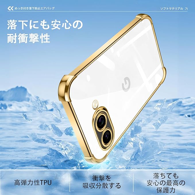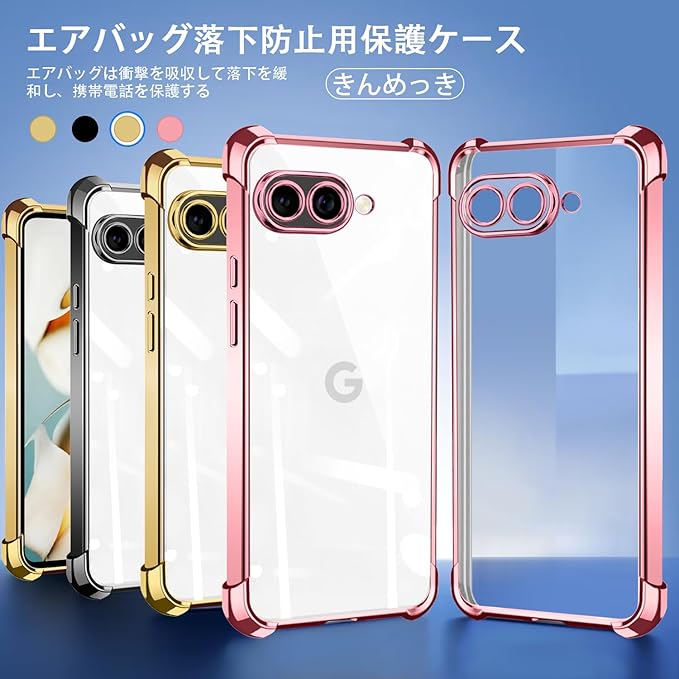互換 Google Pixel 9a ケース クリア ピクセル9A ケース 耐衝撃 Pixel 9a カバー 柔軟 軽量TPU 透明 薄型 レンズ保護スマホ 落下防止 google pixel 9a スマホケース 滑り止め、すり傷防止、すり傷防止 米軍MIL規格 スマホケース(ゴールド)
