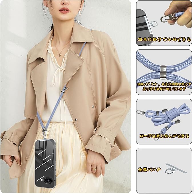 Google Pixel 9A ケース クリア ショルダー ピクセル9a スマホケース カバー 肩掛け 斜めかけ 縄掛けケース 耐衝撃 全透明 TPU 薄型 紐付き 斜めがけ 織りストラップ付き ネックストラップ 長さ調整可能 取り外し可能 落下防止 紛失防止 ワイヤレス充電対(クリア)