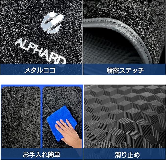 【beyond self】アルファード 40系 フロアマット 2列目 セカンドラグマット ロゴあり 絨毯 傷防止 汚れ防止 レール隠し カスタムパーツ 車種専用設計 取付簡単 (アルファード 40系)