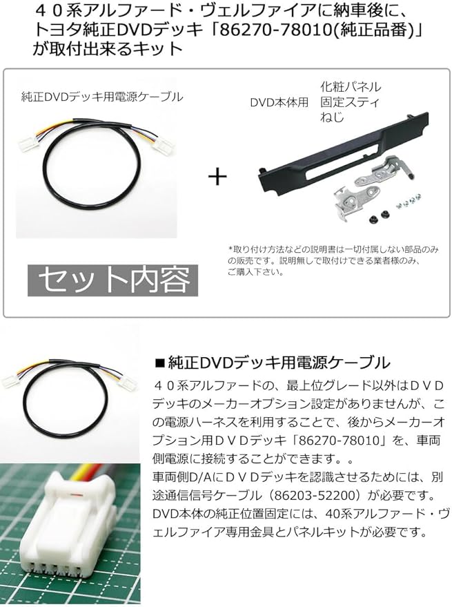 TR-044-T60B トヨタ互換【アルファード ヴェルファイア】2023(令和5)年6月から 40系 純正DVD(純正品番86270-78010)取付キット 化粧パネル 電源カプラー配線 カスタム パーツ
