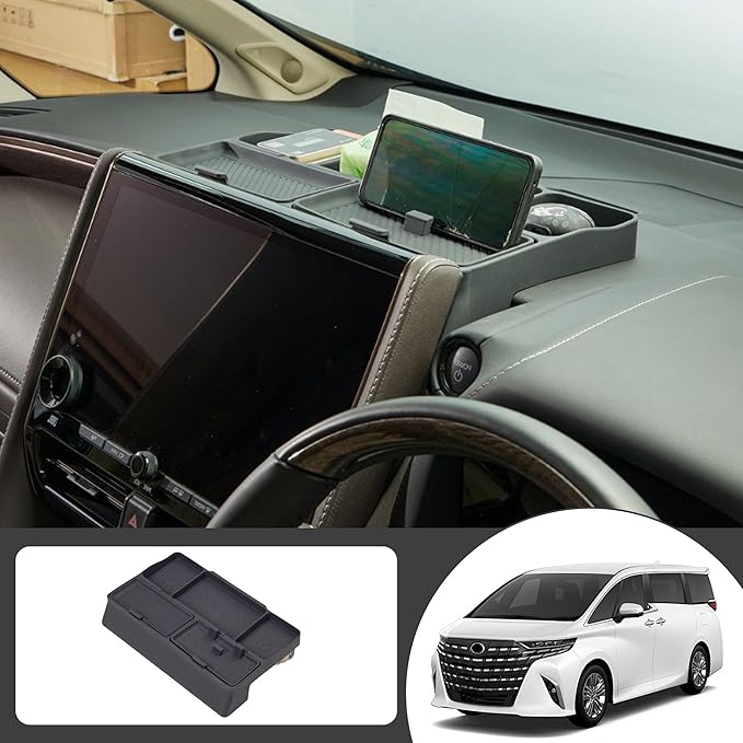 新型アルファード/ヴェルファイア 40系に対応 アクセサリー 画面裏シリコン収納ケース 一体型 スマホスタンド 小物入れ 専用 グッズ 内装パーツ(ブラック)