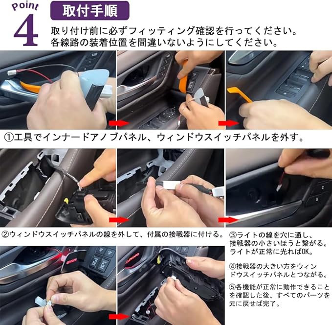 取付にご注意:ウィンドウスイッチパネルを外しての配線作業が必要となります。お取り付けは、自己責任にて、作業を行って下さい。お客様責任による破損での対応は受付できません。