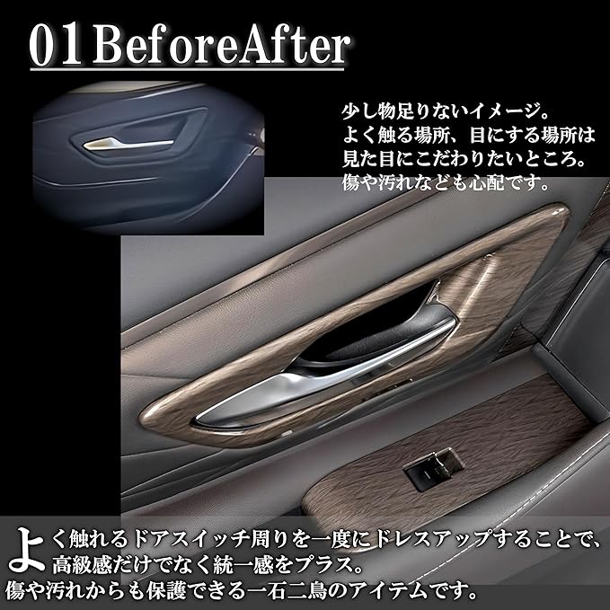 新型 アルファード 40系 ヴェルファイア 40系 アクセサリー 内装 カスタム パーツ ウィンドウスイッチパネル インナードアハンドルカバーセット (木目調)