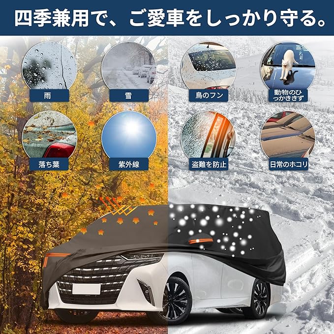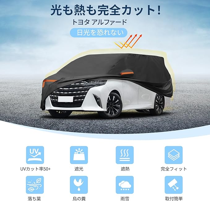 【適合】カバーサイズ:510x200x160cm / 200.79"x78.74"x62.99"(縦 横 高さ)。トヨタアルファード用カーカバー。
