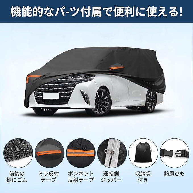 X AUTOHAUX 【トヨタ アルファード専用】10系20系30系40系車 カーカバー2002-2024 スパンレース綿 新型100%防水生地&5層構造 裏起毛 塗装面保護 梅雨 自動車 破れにくい 雹対策 防風ロープ付き 強風 運転席側ジッパー 夜間安全警告 日焼け防止 凍結防止霜除け 510*200*160cm