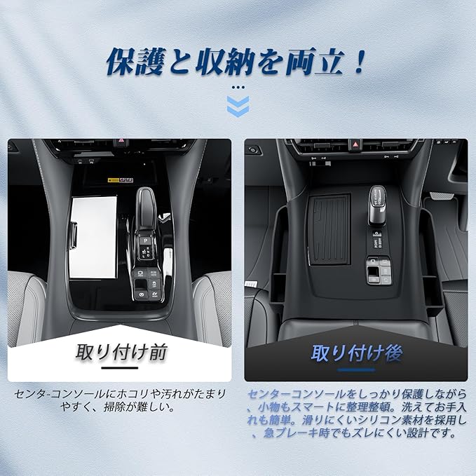 【高品質シリコン素材で耐久性抜群】アルファード40 ヴェルファイア40専用コンソールマットには、シリコン材質を採用しています。滑り止め効果は勿論、耐摩耗性、高温耐性にも優れ、長期間使用することができます。また、水洗いが可能で、お手入れ後はまるで新品のように見えます。品質管理も徹底しており、不明点や不具合があれば迅速に対応いたしますので、ご安心ください。