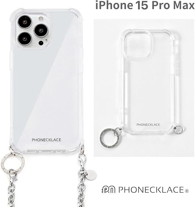 iPhone 15 Pro Max 用 チェーンショルダー ストラップ付き クリアケース [ クロスボディフォンケース 首かけ 斜めがけ 肩掛け ネックストラップ ネックホルダー ワイヤレス充電 ] アップル アイフォンケース バックカバー 背面ケース PN25602i15PM シルバー 【国内正規品】