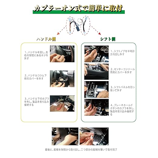 取付簡単:完全カプラーオン式なので、純正コネクタの間に割り込み接続だけで、タップ加工など面倒な配線作業必要ありません。