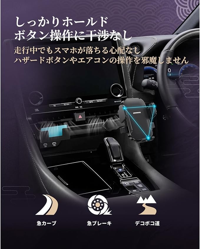 【手軽な取り付けで車内の統一感を実現】LUWUのアルファード40系専用スマホホルダーは、アルファード40系専用にデザインされており、インテリアに完璧にフィットします。特別な工具や複雑な手順は必要なく、取り付けが非常に簡単です。専用設計により、車内のインテリアと調和し、統一感を演出します。これにより、クリーンでスタイリッシュな空間を保ちながら、機能性も確保。快適なドライブをサポートします。