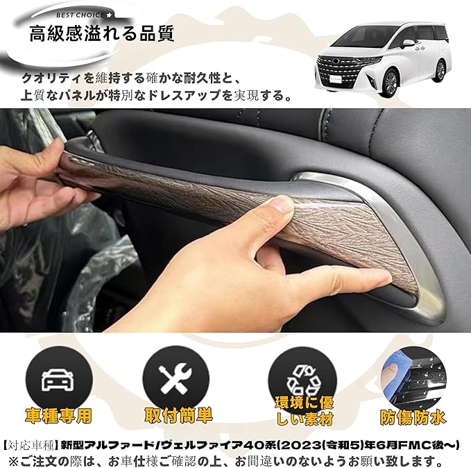 適用 新型 アルファード40系 ヴェルファイア 40系 カスタム アクセサリー パーツ 専用車種 室内装 用品 グッズ インテリア バックシートハンドルトリム ガーニッシュ パネル カバー 木目調ブラウン