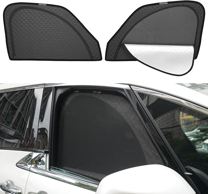 3.【高耐久・高品質素材】:厚みのある生地と滑らかなファスナー構造で、耐久性と使いやすさを両立。 車内側は三層遮光構造(アルミ反射層・断熱コットン層・UVカット層)により、夏は日差しを反射して車内温度の上昇を抑え、冬は冷気を軽減し暖房効率を向上。車外側は高密ブラックメッシュで、通気性を確保しながら虫の侵入を防ぎます。※一部「多層構造」と表記された商品もありますが、本製品は必要十分な構造を明確にした設計です。