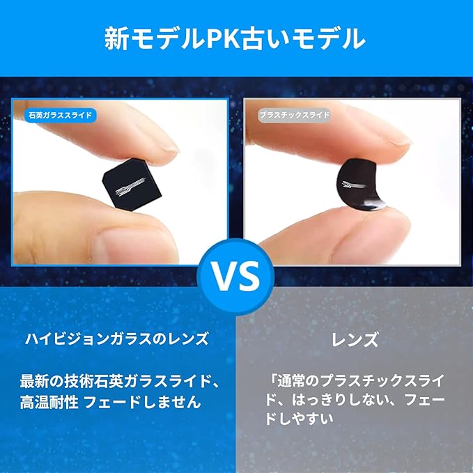 【高品質クォーツガラス採用】投影レンズには耐熱性・耐久性に優れた石英ガラス(クォーツガラス)を使用。長期間使用しても映像がぼやけたり色落ちしにくく、安定した映像品質を保ちます。