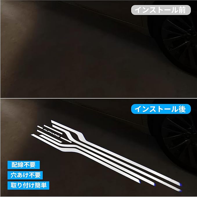 【専用設計】 トヨタアルファード20系 30系 40系 専用設計のドアカーテシライトで、車のドアを開けるたびに鮮やかなロゴが足元に投影され、高級感と個性を演出します。対応モデル多数、詳細は商品説明をご確認ください。