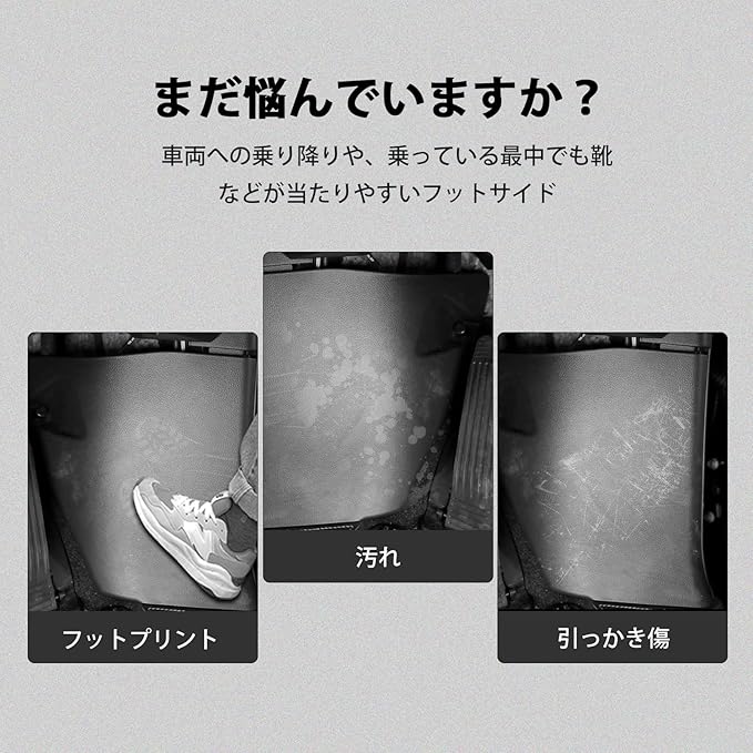 2.【キズ・汚れ防止】車両への乗り降りや、乗っている最中でも靴などが当たりやすいフロントフットサイド?そこで、こちらの商品を使って、気になるキズや汚れをガッチリガード!ご愛車をいつまでも新しく、きれいな状態で保ちましょう~
