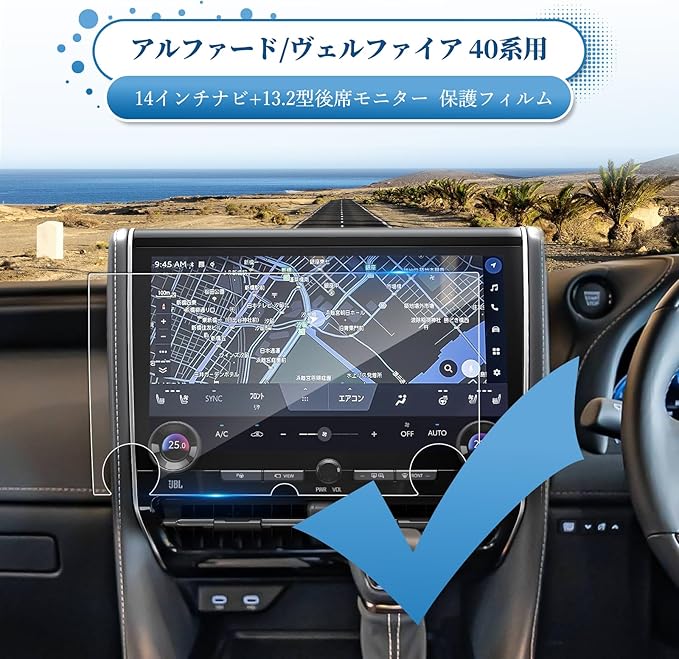2枚入り ナビ+後席モニター 保護フィルム 強化ガラス トヨタ 新型 アルファード/ヴェルファイア 40系用 全面保護 ナビ 14インチ 13.2型後席ディスプレイ V13T-R72F スクリーン保護フィルム ディスプレイオーディオフィルム 9H キズ防止 汚れ防止 極薄 高感度タッチ 自己吸着 貼付簡単 カーアクセサリー