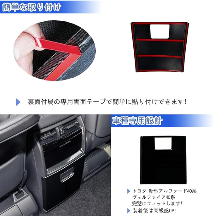 【GIKAKU】新型 アルファード40系 ヴェルファイア40系 アクセサリー リアコンソールカバー リアエアコンキックガード 後席吹き出し口キック防止 保護 キックガードシート汚れ防止 傷防止 耐摩擦 Alphard40系 内装パーツ カスタム ABS樹脂製 取り付け簡単(ピアノブラック)