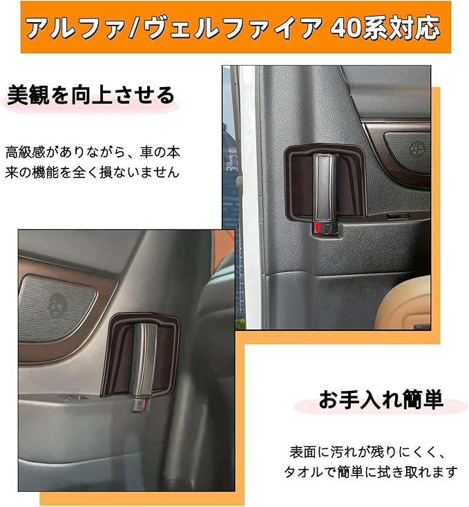 新型アルファード/ヴェルファイア 40系に対応 アクセサリー 室内 専用中門 インナードアハンドルプロテクターカバー グッズ 内装パーツ(艶消し木目調)