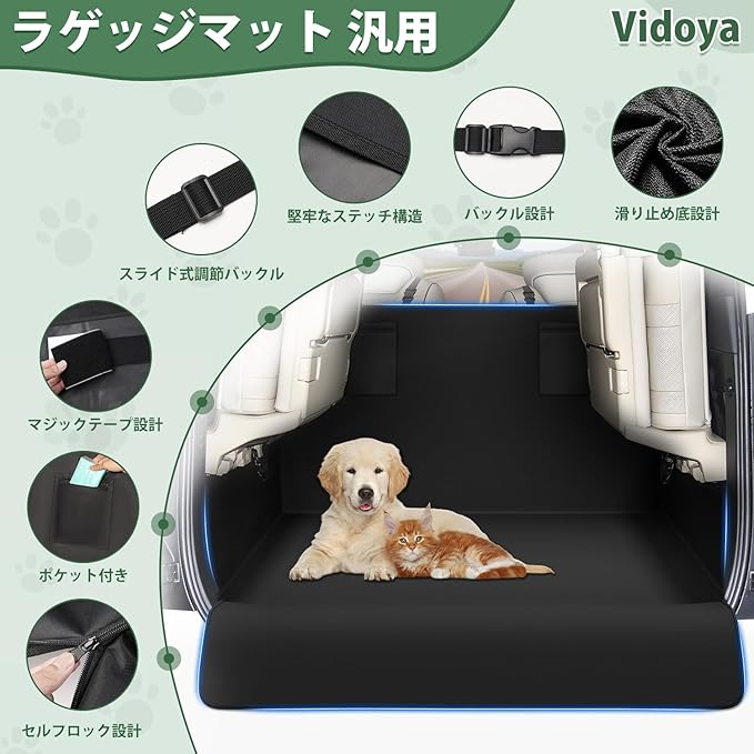 車用 トランクマット トランク シート 汎用 ランクル セレナ ステップワゴン アルファード デリカ ラゲッジマット ペット対応 ドライブシート 防水 ラゲッジシート MPV SUV 大中型車用 汚れ防止 滑り止め セルフロックジッパー 耐久性 (ブラック, ラゲッジマット 汎用 ポケット付き)